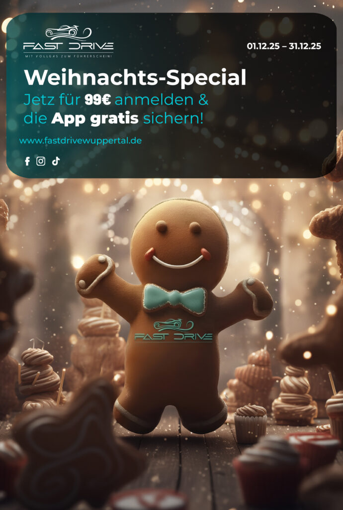 Das Fast Drive Wuppertal Weihnachts-Special Jetzt für nur 99 € anmelden Inkl. Gratis APP Mit unserem Weihnachts-Special steht deinem Führerscheinwunsch nichts mehr im Weg! Weihnachten heißt Wünsche wahr machen! Denn bei uns gibt es keine langen Umwege, sondern nur den direkten Weg zu deinem Führerschein. Mit unserem Weihnachts-Special Angebot in Wuppertal für nur 99 € bist […]